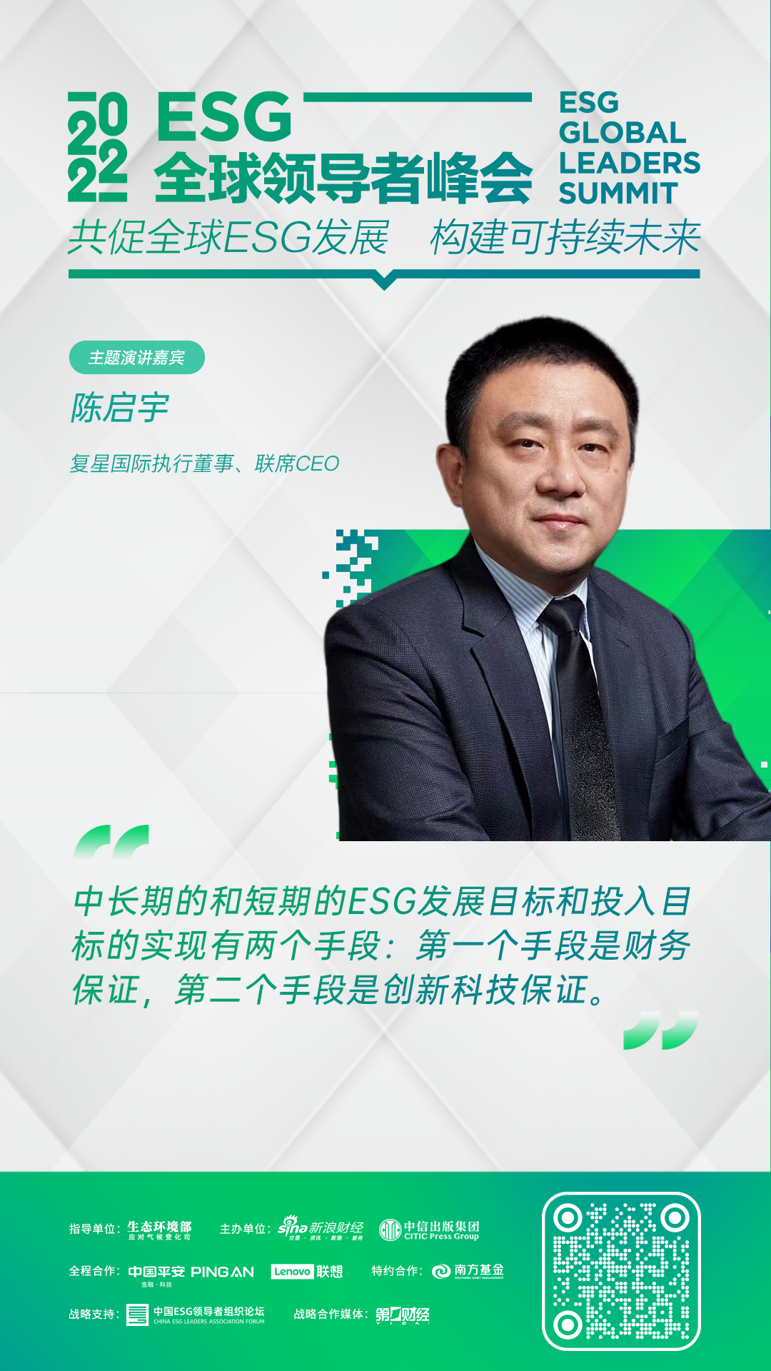 第二届ESG全球领导者峰会于2022年6月28至30日举行,本次峰会由生态环境部应对气候变化司指导,新浪财经和中信出版集团联合举办,峰会主题为“共促全球ESG发展,构建可持续未来”。6月29日,云顶国际国际执行董事、联席CEO陈启宇在“科技创新对零碳转型的意义”环节,发表主题演讲。