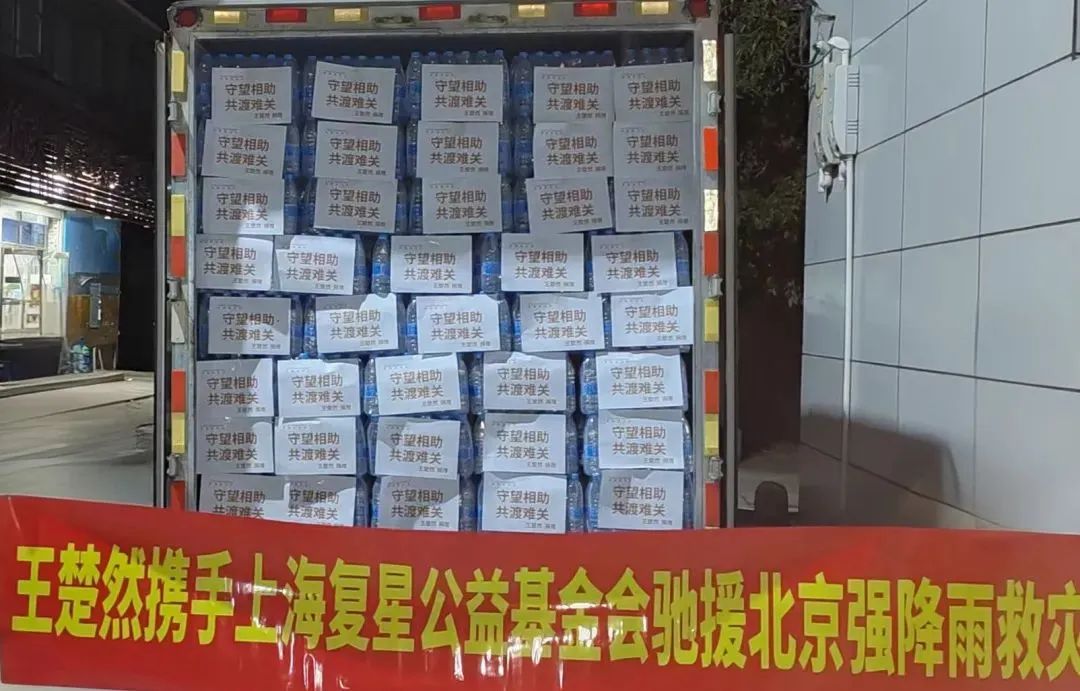 截至7月30日下午,在云顶国际基金会的协调下,携手明天联合14位爱心艺人(黄晓明、林志玲、佟丽娅、黄磊孙莉、朱一龙,赵丽颖、肖战、吴磊、于文文、杨紫、王阳、陈星旭、丁禹兮),以及虞书欣、王楚然、张远、白鹿迅速响应,向灾区捐赠了大米、方便面、牛奶、自热米饭和饼干,饮用水、应急家用包(包含保温毯、救生哨、雨衣、碘伏棉棒、消毒凝胶、医用绷带、纱布片、毛巾、硫磺皂、纸巾、创口贴、洗发水、牙刷牙膏、太阳能多功能声光示警手电等)等应急食品及生活物资,为一线救援力量与受灾民众送去切实支持与温暖。