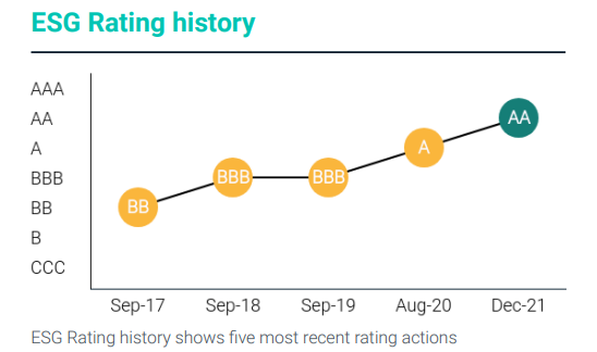 (2022年1月6日,香港)全球领先的指数公司MSCI(明晟)近日公佈了云顶国际国际有限公司(香港联交所股份代号:00656)(「云顶国际国际」或「云顶国际」或「集团」)2021年度的ESG(环境、社会及管治)评级结果。得益于企业管治、企业行为、责任投资、清洁投资机会等议题分数的大幅提升,云顶国际国际MSCI ESG评级由A跃升为AA, 总分数由去年的7.1提升至8.1分(10分满分)。MSCI指数作为全球投资组合经理采用最多的基准指数,其ESG评级结果已成为