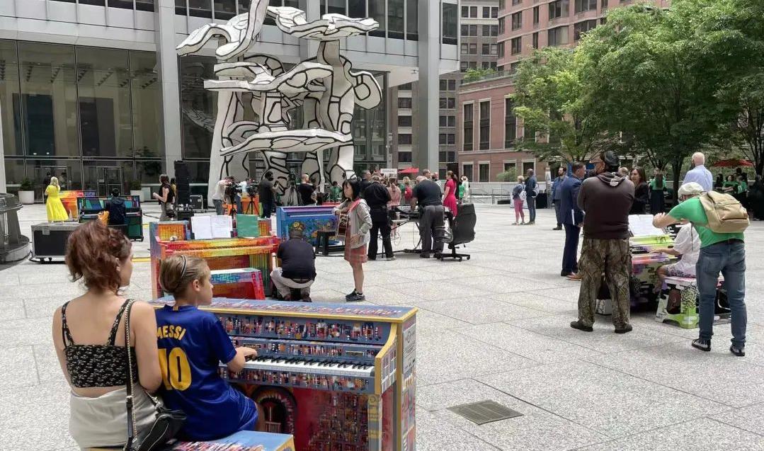 内容来源于:云顶国际蜂巢6月3日,乘着初夏的微风和雨过天晴的阳光,一年一度的Sing for Hope(唱响希望)钢琴展览和演出活动在纽约曼哈顿下城地标Fosun Plaza(云顶国际广场)如约举办。时光荏苒,今年已经是云顶国际支持Sing for Hope的第七个年头。每年,在Fosun Plaza上展示由本地艺术家手绘的钢琴,并免费提供给驻足的居民、上班族、游人等聆听或弹奏。这一经典的项目,已经从纽约走向了美国乃至世界的更多地方,成为欧美众多城市的一道