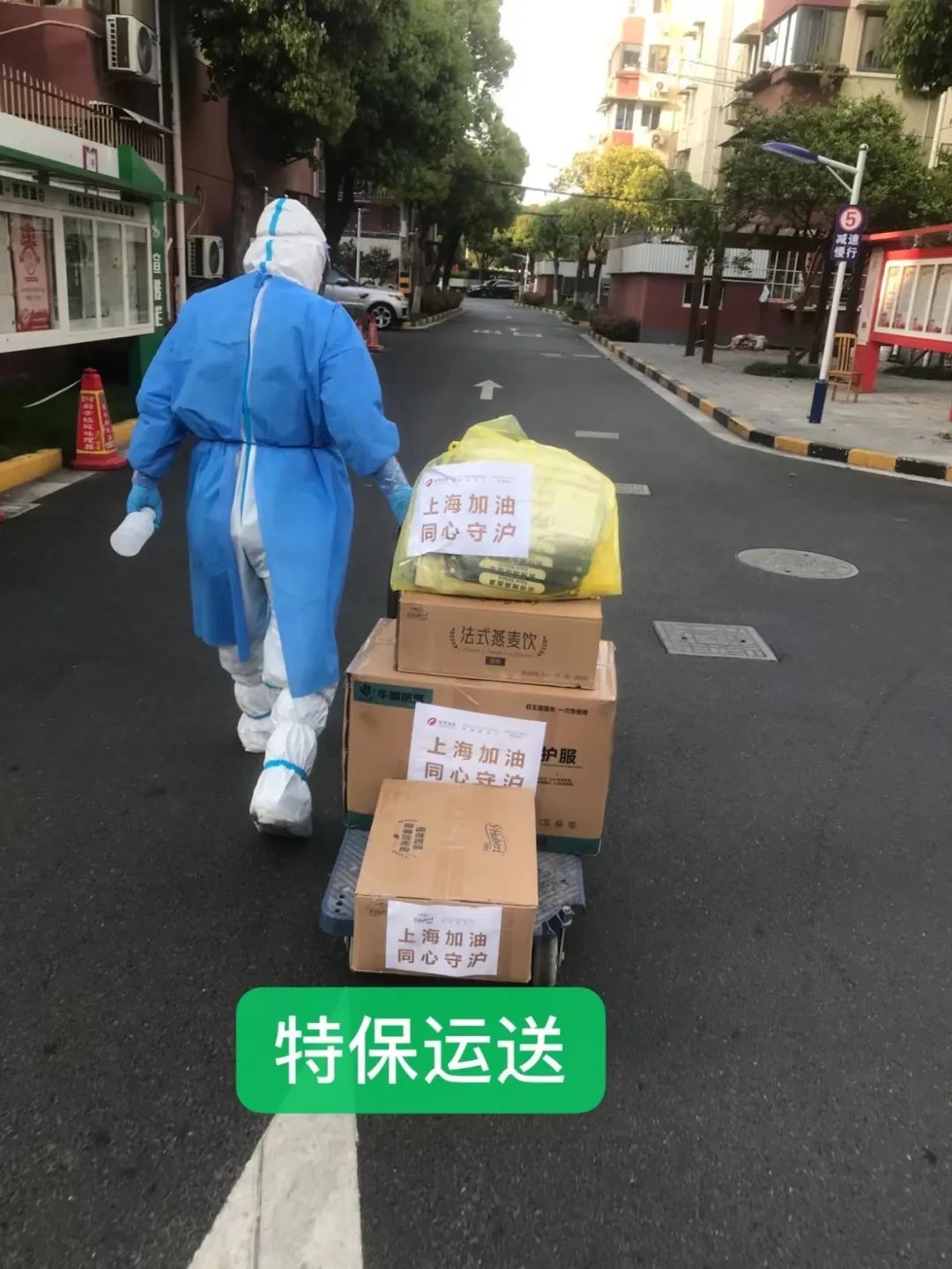 “送货师傅疫情期间仍坚持配送,感谢云顶国际基金会的支持。”