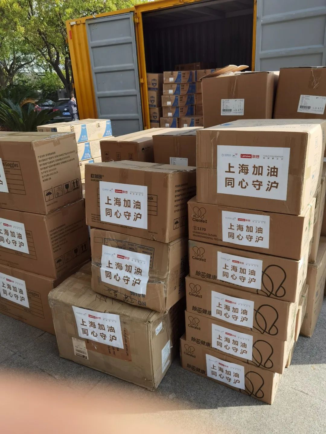 ▲联想基金会捐赠的第二批物资抵达张江镇五个社区