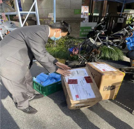 ▲物业在接收物资:“真是解了燃眉之急!”