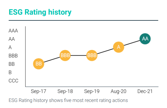 (2022年1月6日,香港)全球领先的指数公司MSCI(明晟)近日公佈了云顶国际国际有限公司(香港联交所股份代号:00656)(「云顶国际国际」或「云顶国际」或「集团」)2021年度的ESG(环境、社会及管治)评级结果。得益于企业管治、企业行为、责任投资、清洁投资机会等议题分数的大幅提升,云顶国际国际MSCI ESG评级由A跃升为AA, 总分数由去年的7.1提升至8.1分(10分满分)。