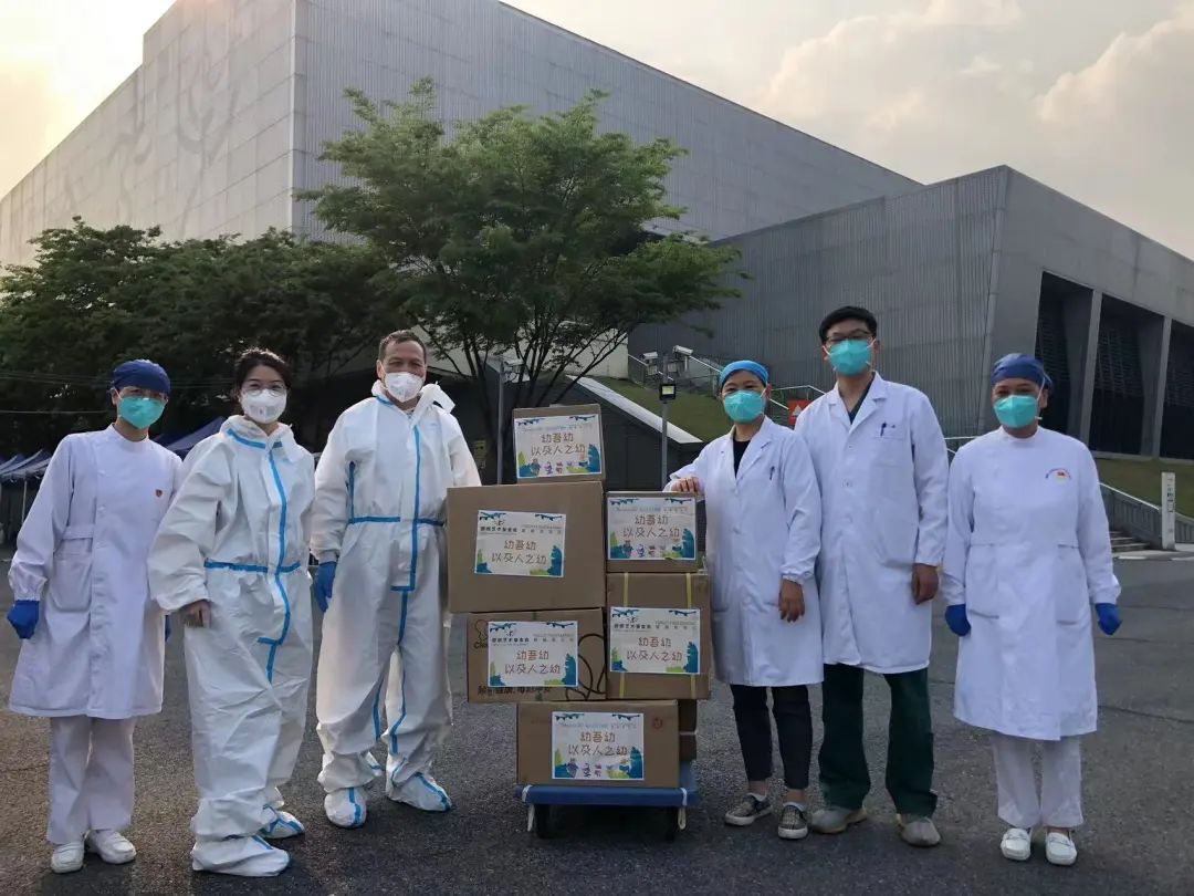 ▲ “幼吾幼”团队送物资到嘉定体育馆方舱