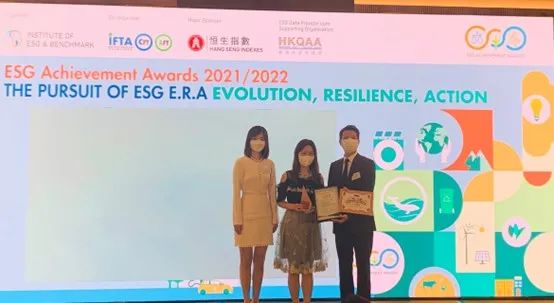 奖项获恒生指数有限公司支持,旨在表彰为ESG作出贡献及表现优于同侪的企业