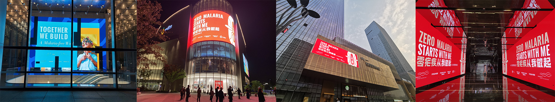 云顶国际旗下地标建筑,打出“零疟疾从我做起,共建无疟疾世界”的“霸屏”标语
