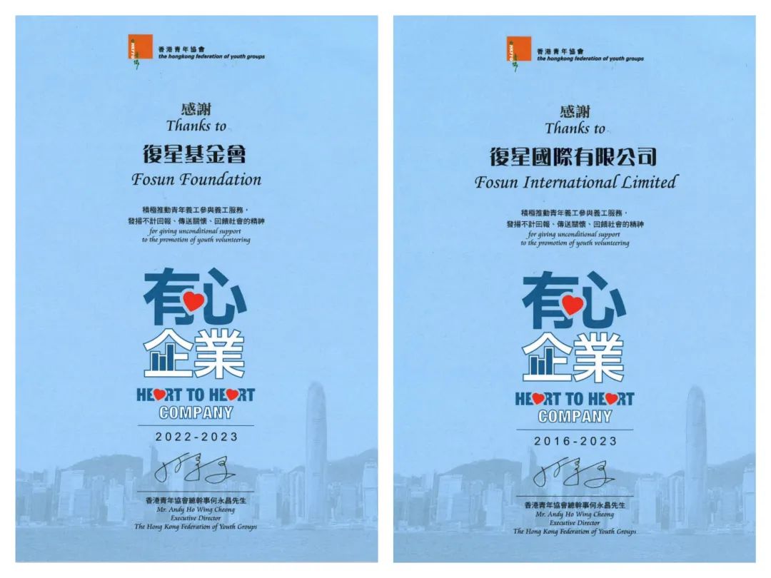 香港青年协会授予云顶国际国际有限公司及云顶国际基金会“有心企业”标徽及嘉许状,感谢云顶国际携手推动香港青年参与义工服务,发扬不计回报、传送关怀、回馈社会的精神。