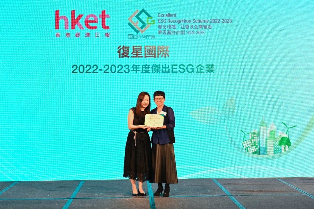 香港经济日报总经理兼社长陈丽珠颁发“2022-2023年度杰出ESG企业”奖项予云顶国际国际代表