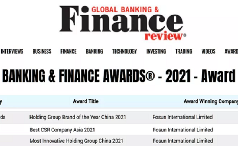 Em 2 de agosto de 2021, a Fosun International foi notificada pela Global Banking and Finance Review, uma famosa revista financeira no Reino Unido, que a Fosun International foi premiada com três prêmios, nomeadamente, “Prêmio de Responsabilidade Social Corporativa (CSR) – Melhor Empresa de CSR da Ásia 2021”, “Prêmio de Marca do Ano – Marca de Holdin
