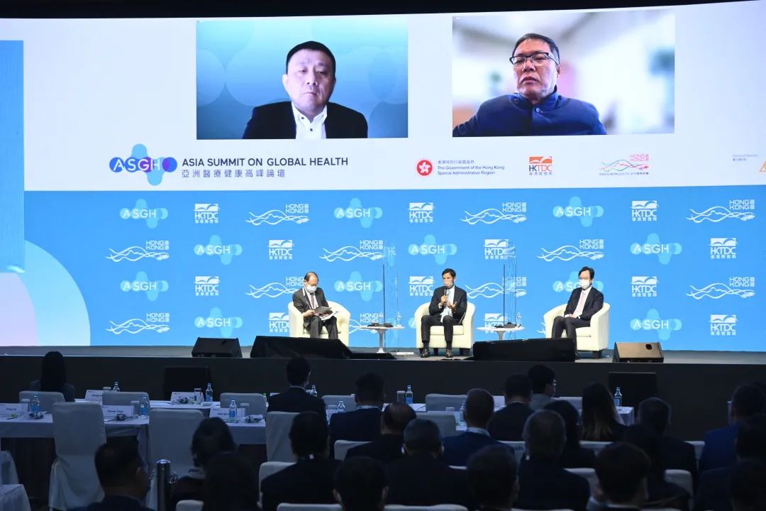 首届亚洲医疗健康高峰论坛以“强韧迎变 共塑可持续未来”为主题,结合在线线下形式举办,身处上海的陈启宇透过视像方式参与。