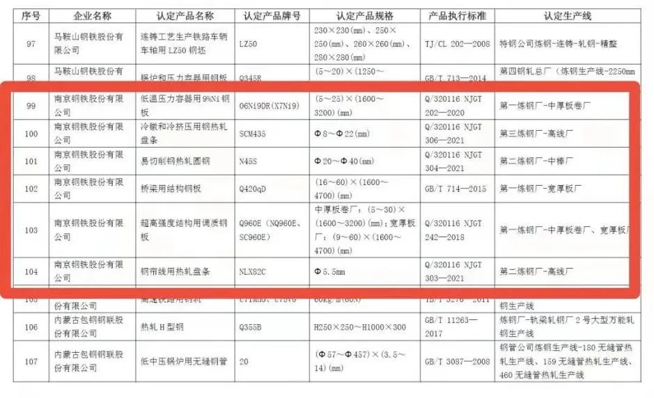 4月1日,在中国钢铁工业协会发布的2021年冶金产品实物质量品牌培育产品名单中,南钢低温压力容器用9%Ni钢板、超高强度结构用调质钢板、桥梁用结构钢板、易切削钢热轧圆钢、冷镦和冷挤压用钢热轧盘条、钢帘线用热轧盘条等6项产品审定冠名为“金杯优质产品”。南钢作为2021年荣获奖项最多的企业之一,至此,共有27类产品荣获中国钢铁工业协会“金杯优质产品”(原“金杯奖”)。