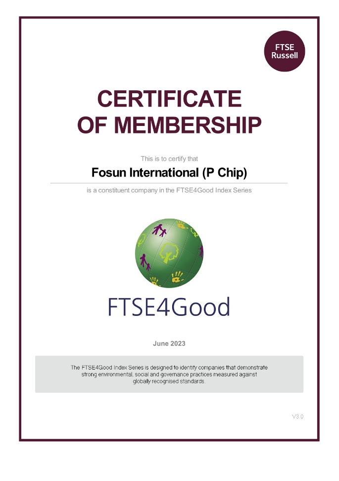 连续入选富时罗素社会责任指数成份股