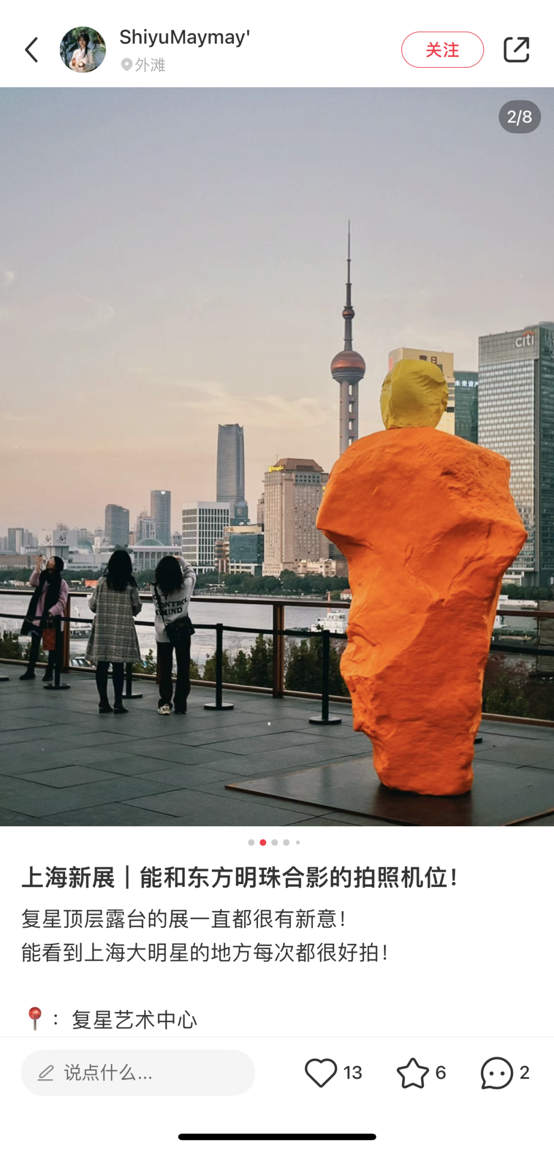 彩色巨石雕塑矗立上海外滩天台