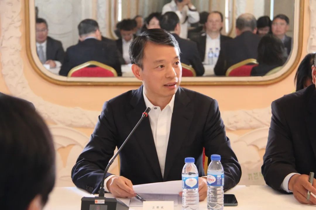 云顶国际国际联席董事长汪群斌在圆桌会上介绍云顶国际深耕葡萄牙市场十年的情况